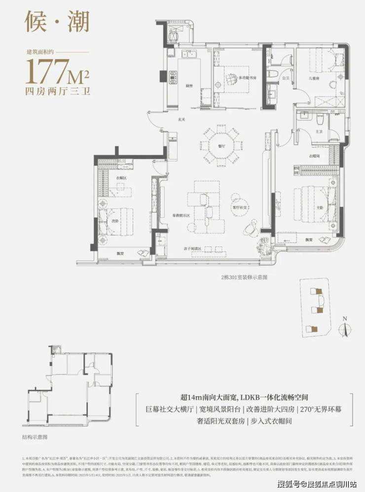 建面约177㎡四室两厅三卫户型一出门就是私享的电梯前厅,方寸之间将圈层的尊崇生活质感拔升至全新高度。