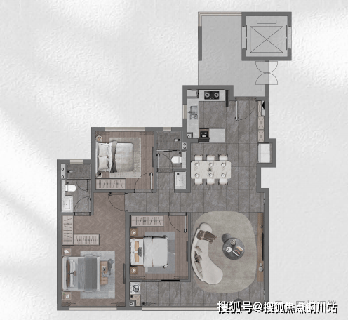 双主卧设计更适配三代同堂。玄关处次卧套房,面积与功能设计都适合老人长期居住。主卧套房拥有270度观景大窗、五件套卫浴等,奢享尺度非同凡享。