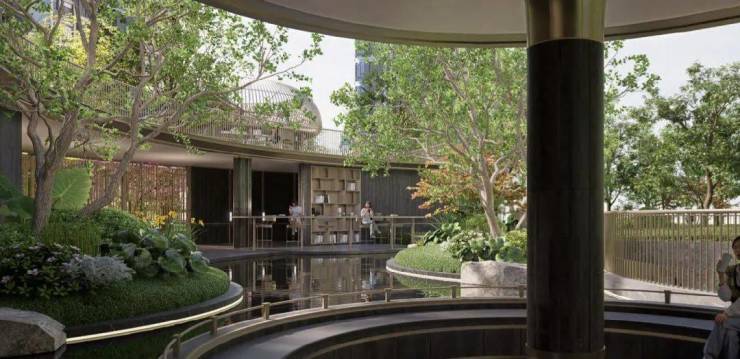 会所设施:小区自带下沉式全龄化泳池会所,拥有恒温泳池、健身房、茶室、宴会厅等多元配置,功能空间齐全。除了 7、8 号楼,其余一楼都做了架空层泛会所,通过风雨连廊与园林景观串联,营造出强烈的仪式感与尊崇感。