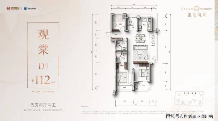 112㎡四房两卫:独立玄关+三阳台,主卧套房+衣帽间。