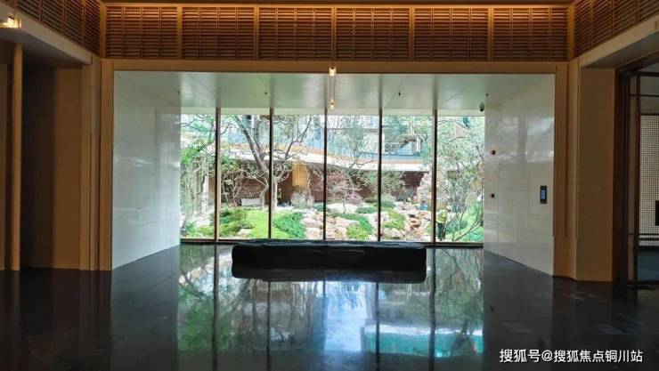透过大堂的玻璃景墙,可见下沉式庭院如「无界景观视廊」。