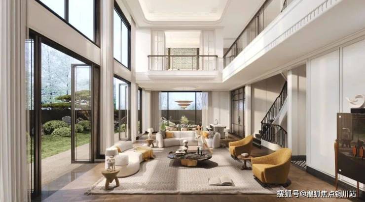 其一,立于6.5米挑空客厅,三面环幕窗将山景纳入室内,远眺崂山,近揽世园绿意,阳光倾泻如注,成就真正的「全景舱」视野。