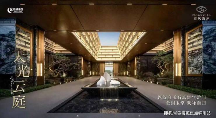 “紫气东来”主入口门仪,搭配“翠谷幽兰”奢石与油松盆景,尽显东方雅致。