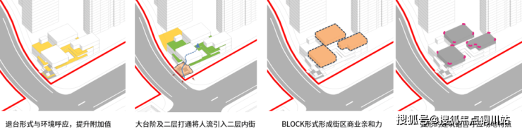 1.打造昭示性立面 (潮引力芯空间-漂浮盒子),植入引流功能(潮引力趣体验-实体运营店:健身会所、成长中心、网红市场),立面采用简约现代美学构成,细节体现现代精工,彰显素雅人文雅居;
