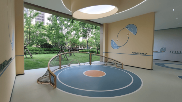 【全龄社群空间】以不同的主题业态,包括儿童全龄运动、文娱康体、商务会客瑜伽健身、幼儿活动区、四点半学堂书吧、手工作坊、共享驿站、青年无界社交、共享会客等在内,在9栋楼打造了9种主题差异化,满足“全龄段”美好生活场景的架空层。