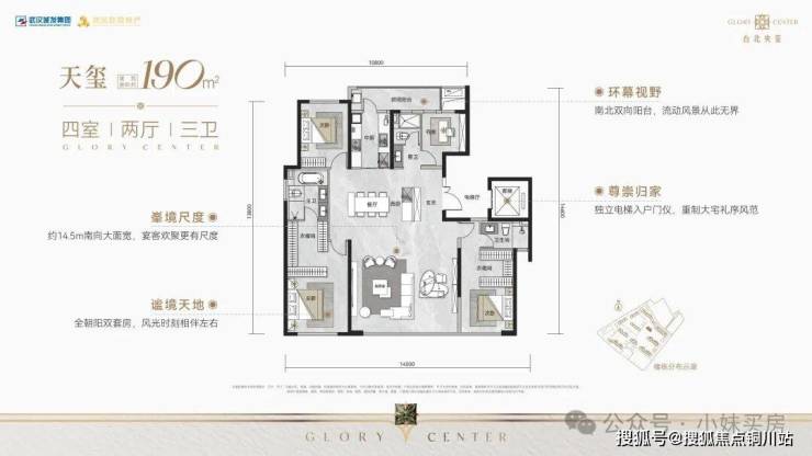 项目主推建面约109-190㎡准四代住宅。