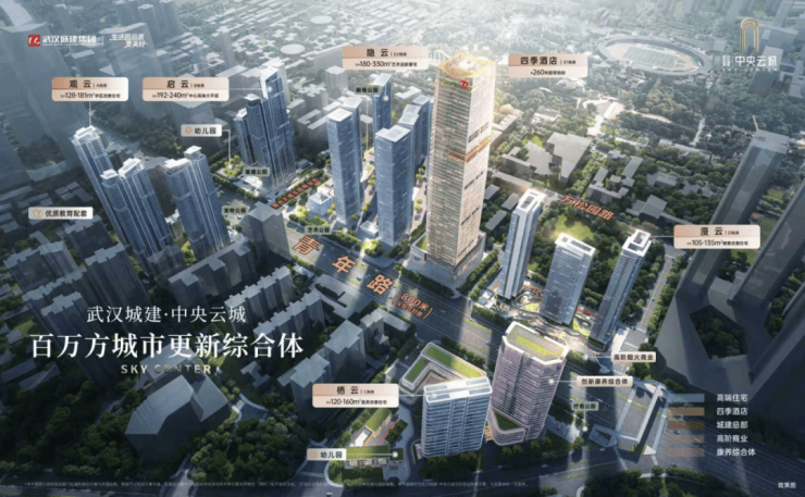 武汉城建·中央云城是武汉城建集团在汉口青年路核心打造的百万方城市更新综合体,以5大地块打造集全系精装奢宅、时尚商业街区、商办写字楼、创新康养服务、城市文化聚场于一体,首进华中的全球超奢四季酒店已完成签约,未来将形成全复合业态的城市中心生活样本。