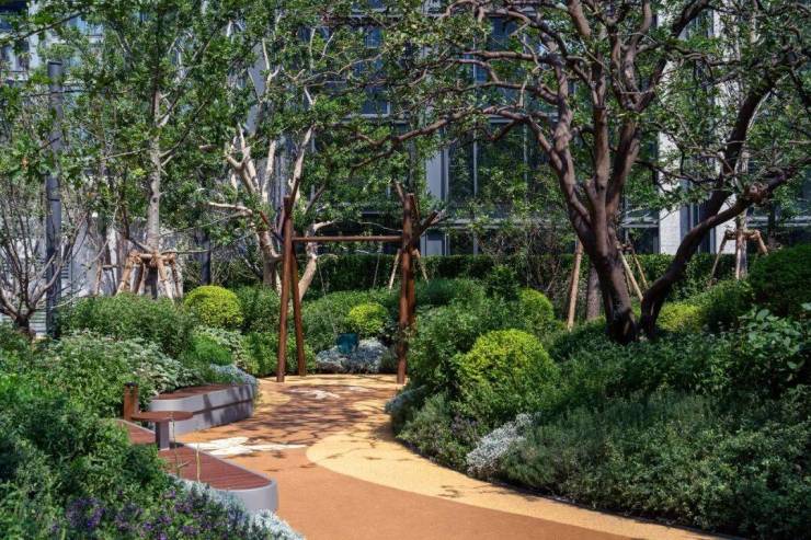 穿越门厅,循蜿蜒小径,静水映天光绿意,引向“森之庄园”。自然生态、艺术装置与国际美学交融,营造沉浸式森居呼吸感,令生活与自然和谐共鸣。