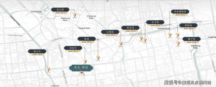 建发·璟园,盘踞城市文化遗产中轴上,周边约5公里内享西园寺、寒山寺、山塘街、留园等10处名胜古迹环伺,驾车约15分钟即可到达。