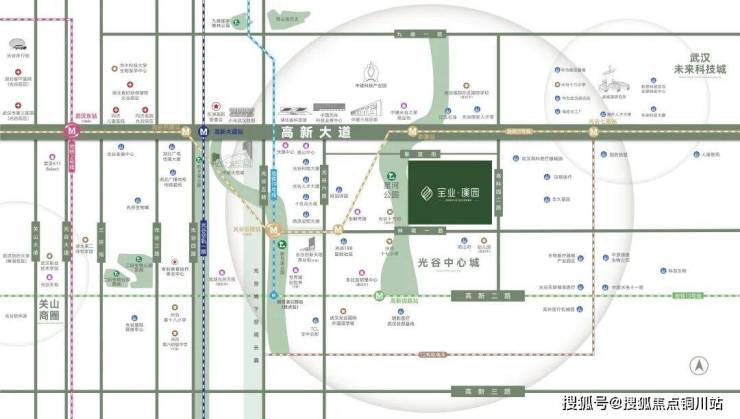 宝业·璞园位于中国光谷的价值高地——万亿科创主轴高新大道旁,属于光谷中心城板块,距离11号线地铁口直线距离仅180米,毗邻亲子主题公园——星河公园。