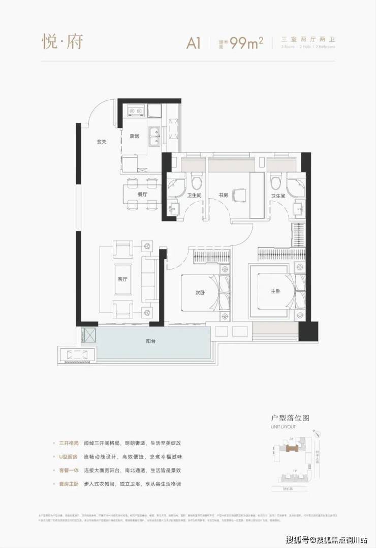 该户型位于2号楼的西边端头,为南北通透的边户。