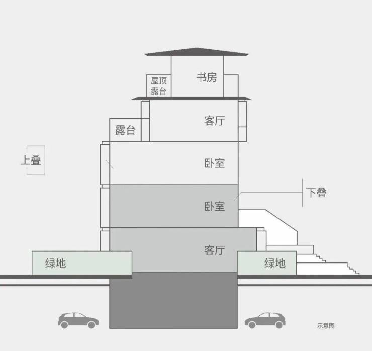 创新叠加组合,下叠二层与上叠三层可设置为卧室,“静区”相连,互不打扰,把与邻居之间的偶然尴尬化于无形。