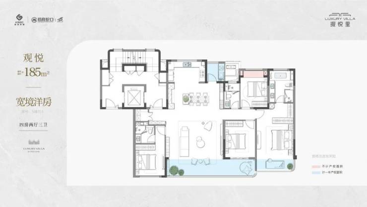 • 建筑面积约185m²极境洋房,四房两厅三卫