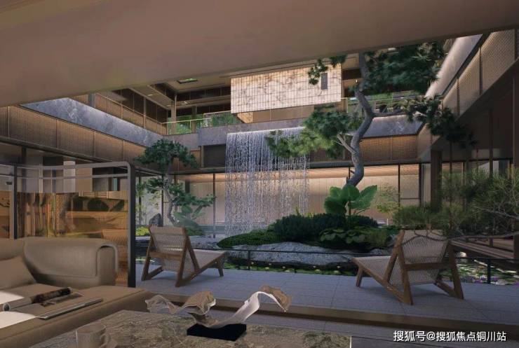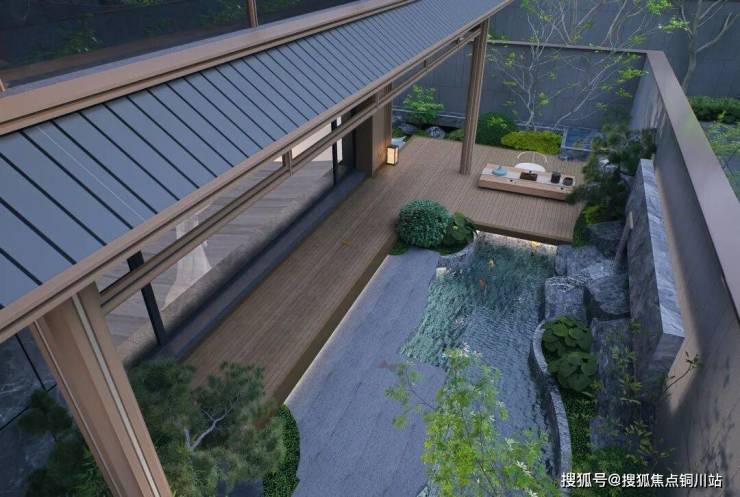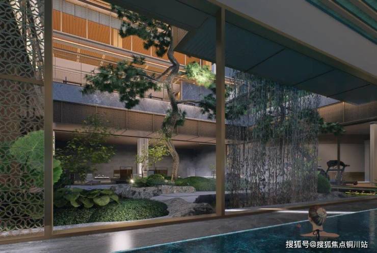 传统宋式建筑的重檐、撺帘杆等元素,融入现代视觉手法,搭配大面积高透玻璃,豪宅气息扑面而来。4F叠墅同样宋韵十足↓