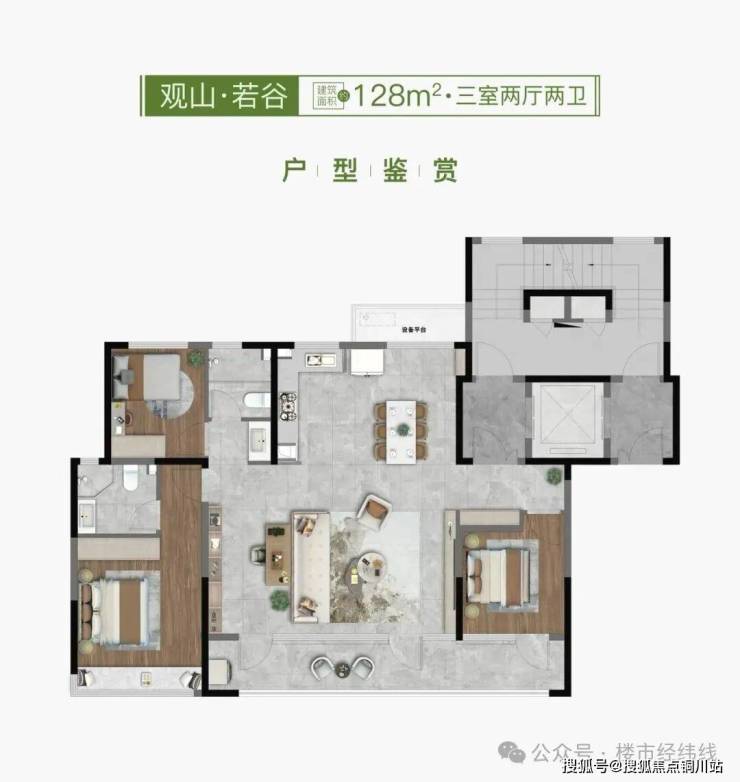 二轴-十字绿荫景观带:磐林间,贯穿社区南北主路的林下尊享礼序归家轴。听泉谷,贯穿社区东西主路的谷间漫享时光疗愈轴。绿荫花影,泉涌磐石,美妙景致汇聚于此,移步异景间静赏自然动人之美。