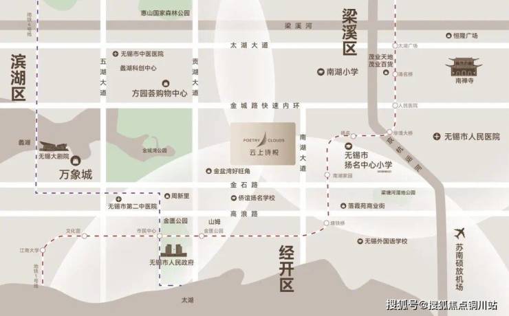 项目紧邻金石路、快速内环南、南湖大道三条城市轴线,可快速抵达无锡各个主城区,出行便捷从容;同时,三条城市轴线将自然生态、多元商业、人文休闲等资源串联,美好生活的想象由此展开。