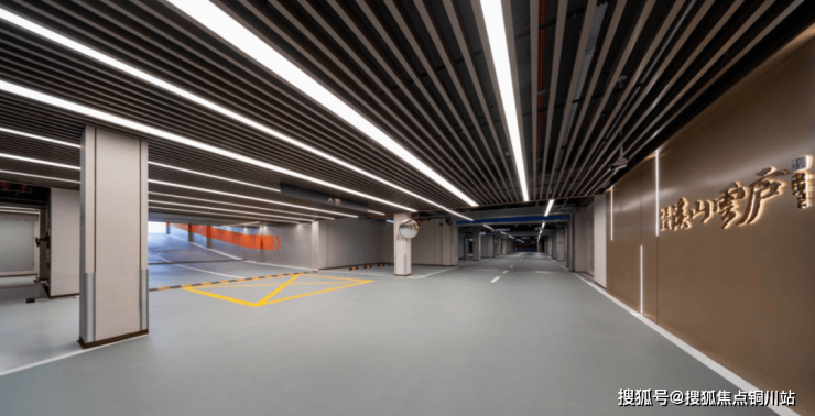 地库也不再是传统的灰暗空间,而是采用明亮挑空设计,地面采用静音聚氨酯防滑耐磨地坪,墙面臻选真石漆,顶面采用格栅吊顶,龙门式迎宾灯光系统,让地库成为归家的第一道风景。