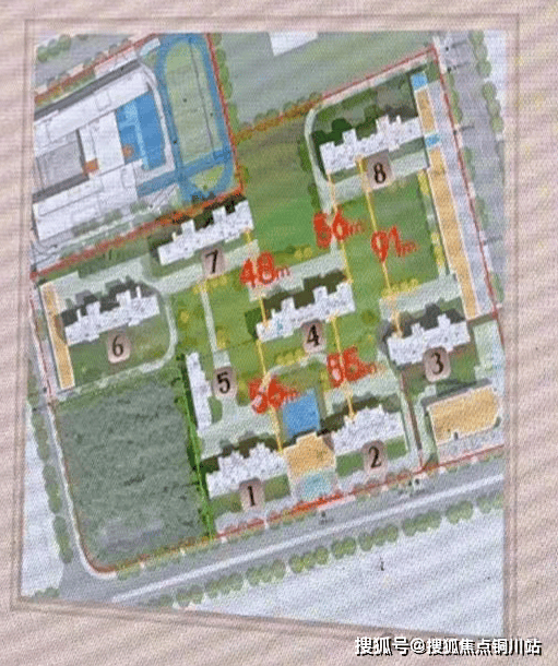 从产品发布会上的PPT来看,项目最大楼间距为91米(3号楼到8号楼),最窄也有48米(4号楼到7号楼)。