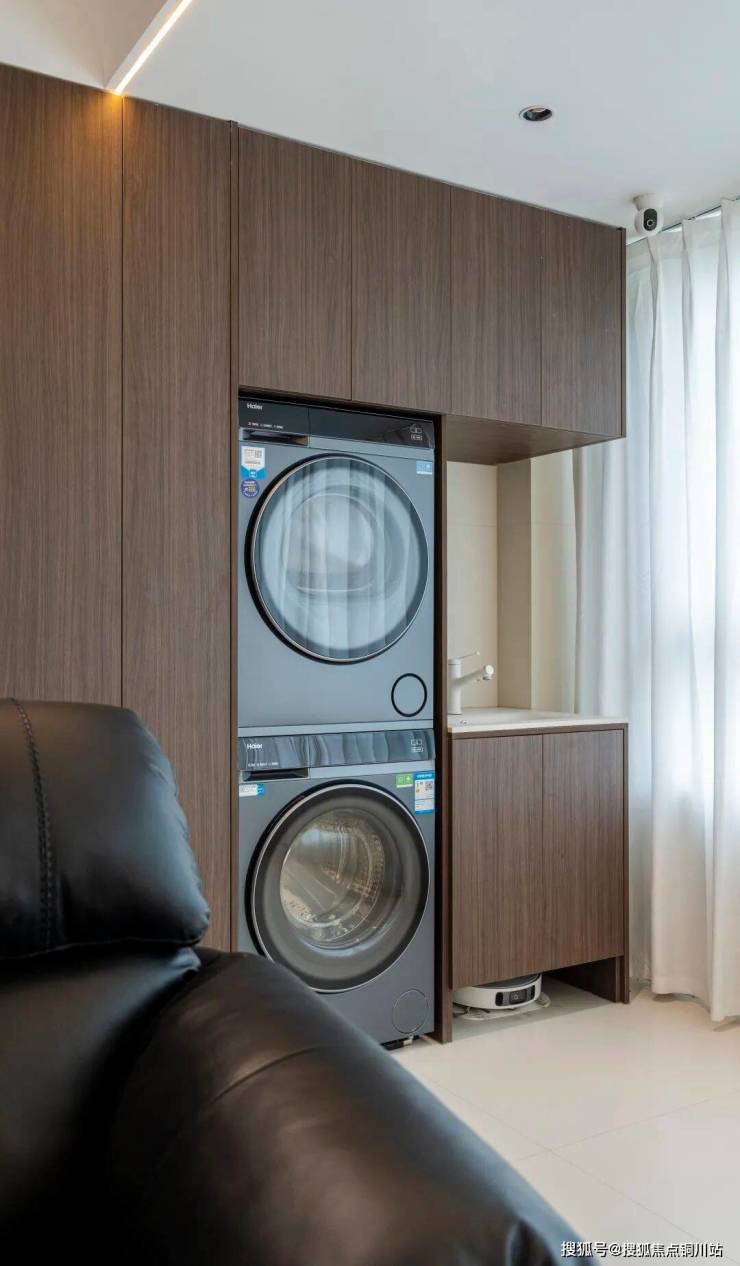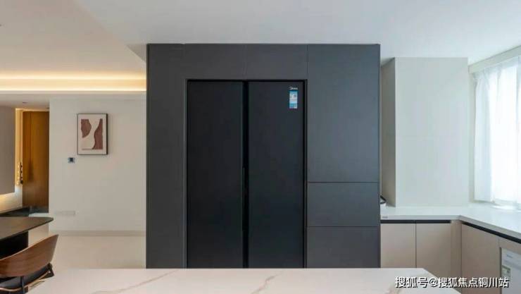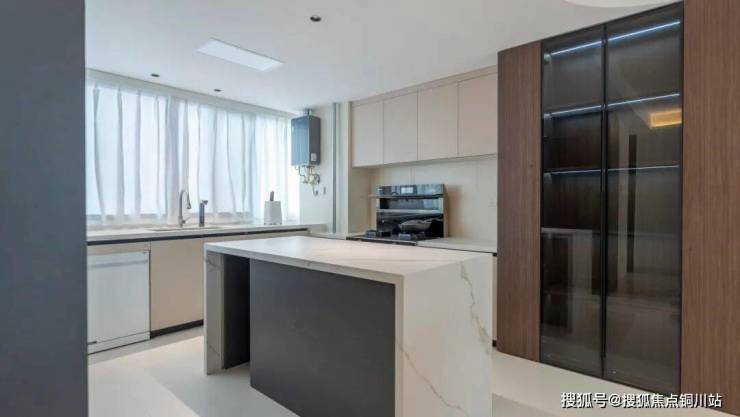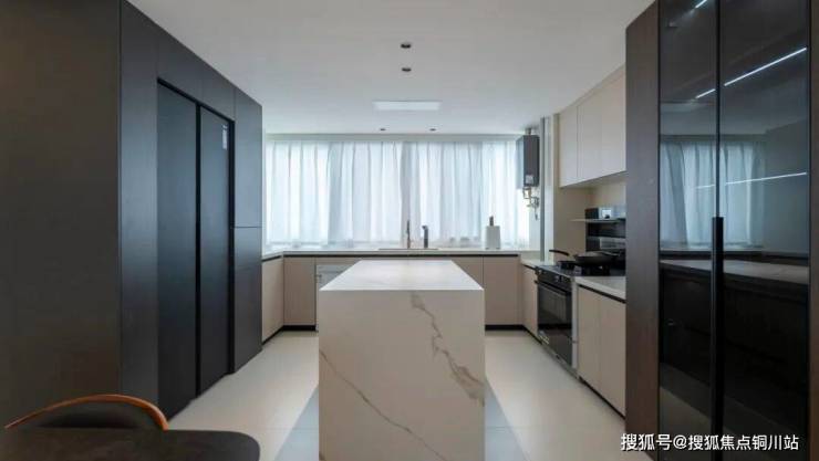 其中一侧配备内嵌式冰箱,另一侧设立清洗区,同时还设有操作区,各个功能区域划分明确,动线规划合理。