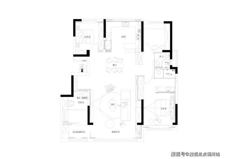 本案设计师抛去繁琐复杂的设计,最大程度地诠释通透美感,保持区域之间的开放关系,又在公区与私区细分的情态中,注入连续性、变化性、神秘性、艺术导向性的情绪表达,创造「放」有格局,「收」有意趣的空间品格。