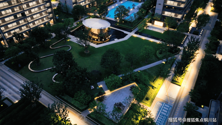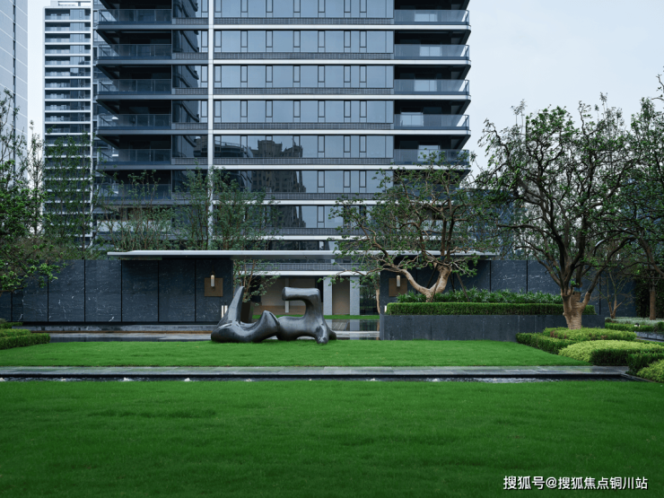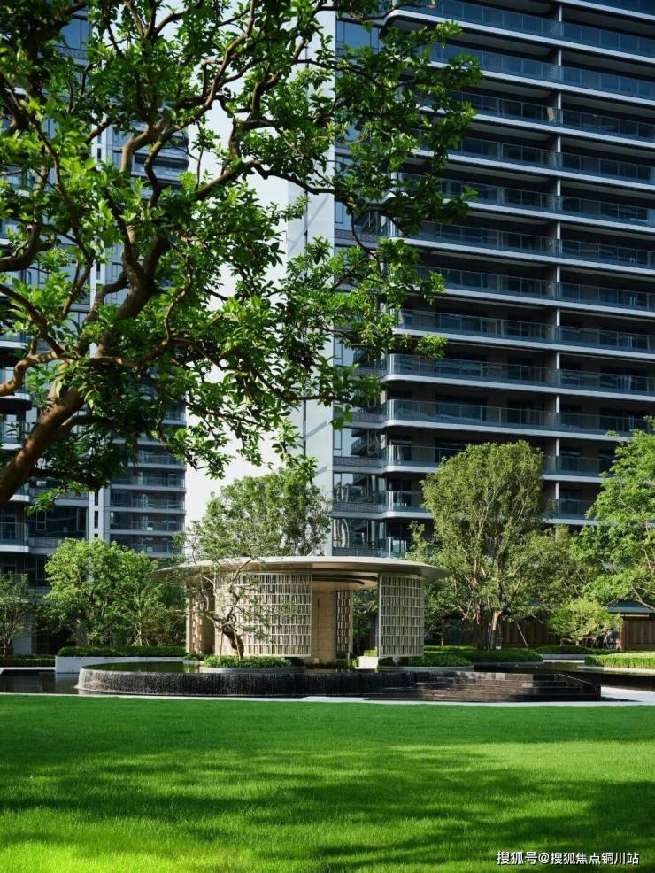 还有极为震撼的万方中央花园,不仅景观会客厅的叠水和跌水造景呈现出不规则的几何美学,就连英式大草坪上都有着堆坡起伏和曲水流觞的动感风情。