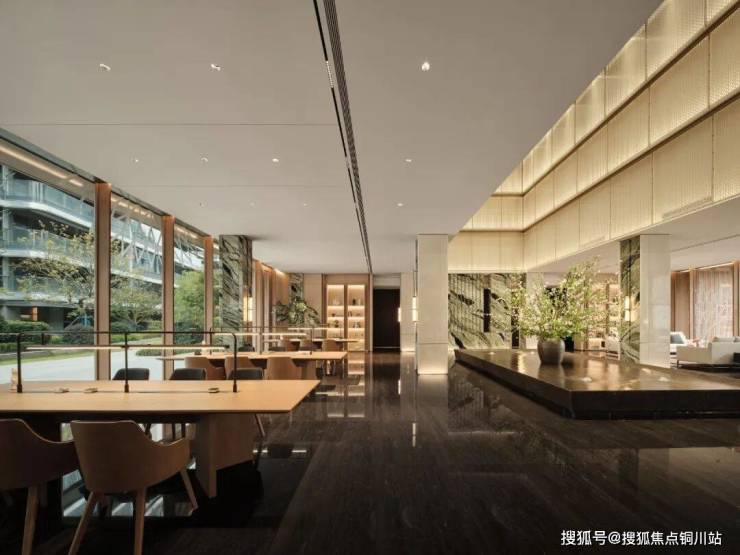 同时,该区域还将升级成为L型双层会客厅。一层除了迎宾大堂,还配置了会客区域和阅读区域。二楼是约500方“四季荟”,包括社区会客厅、健身空间以及茶室等休闲社交功能。