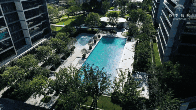 成人和儿童双池设计的星空泳池,结合多个休闲廊架,充满了四季酒店那般的度假风情。每到夜幕降临,这个区域又像一条流淌在四季辰院里的银河。