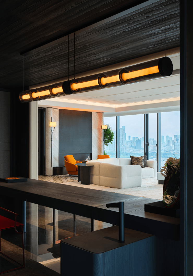 当滨水景观涌入室内,家的边界被温柔消隐。空间无界,是继续强化“破”与“立”的辩证关系,也是更加侧重“景”与“境”的转换,以此来显现无边界的永恒。
