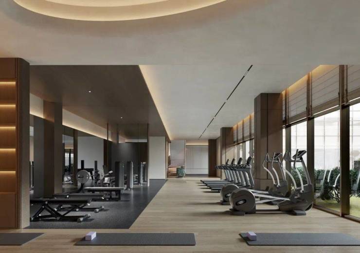 约1500㎡酒店式归家会所丨高奢酒店式归家大堂,规划轻氧健身、律动瑜伽、高奢会客、休闲书吧等社交空间,礼遇私域圈层。