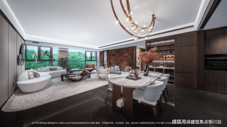 LDKB一体化设计,打破空间界限的同时还能深化家人的互动、交流,约42.9㎡会客厅,尺度阔奢,可以满足业主多种社交场景。