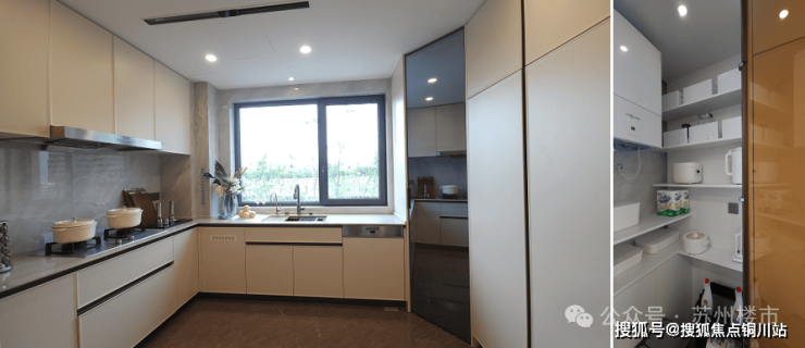 比如建面约155㎡户型特别设计了厨房钻石柜,空间够大,除了收纳厨房器具外,还放得下小推车。