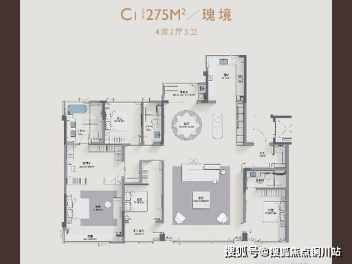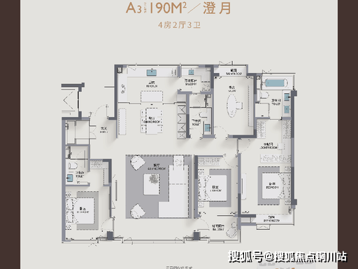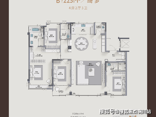 2、建面约 225㎡ 四房两厅三卫(本次收官主力)