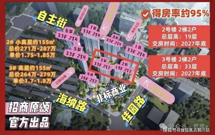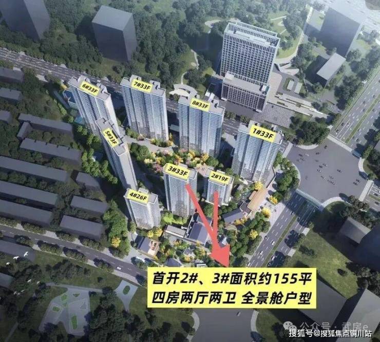 3号楼共33层,2梯2户,均为建面约155平房源。