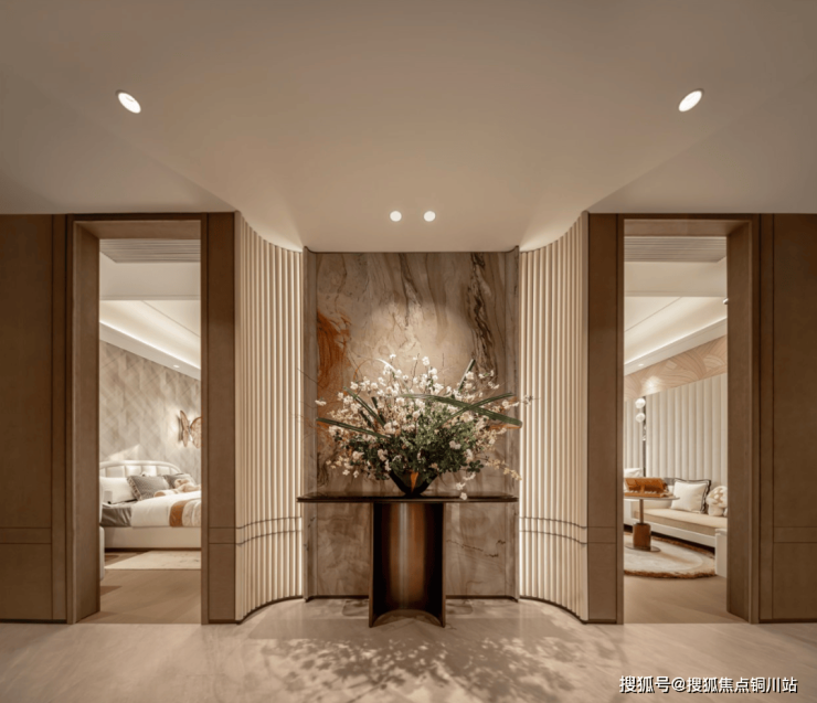 第二,女王十字玄关,一直是大宅才能有的体验,多见于240㎡+产品中。今天,这个楼盘只用185㎡就实现了,没办法,房子太大,内部交通、仪式感需要在这里起承转合。