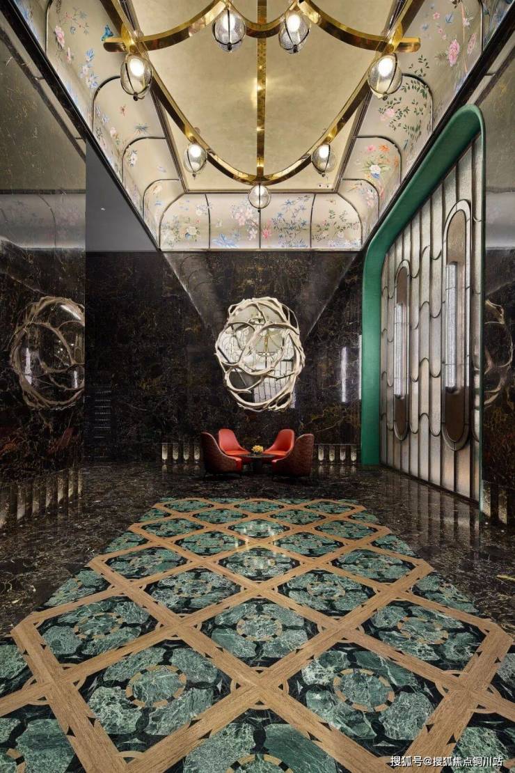 绿城用了大量欧洲经典元素和温州非遗特色的碰撞,营造了一个老钱华丽的梦境。约8m挑高的空中殿堂里,这些以缎为底、彩丝绣之的瓯绣,青釉优雅、温润光泽的瓯陶,还有贝壳之华、漆艺之魂的螺钿,都使得这座梦境真实可触摸。