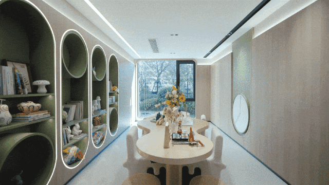 社区图书馆:有道书局,以图书共享为核心激活社区文化活力,以“图书+咖啡+社交”的复合空间,为业主提供享受咖啡的安静阅读舱、快速处理工作的轻办公驿站,休闲社交的会客空间。
