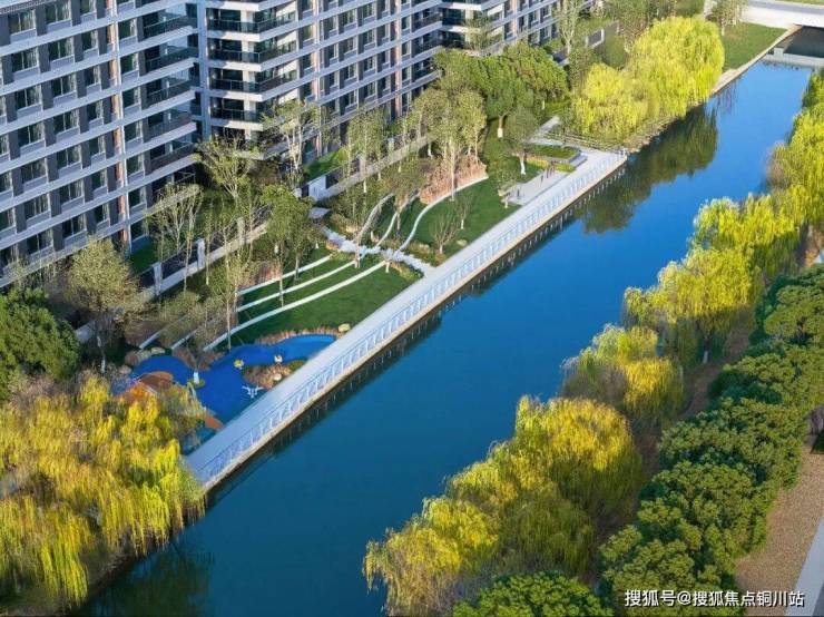 值得一提的是,玖阅还跳出红线之外,在小区南侧的自然水系之畔,自费打造了沿河景观步道、全龄儿童乐园与多功能健身场地。