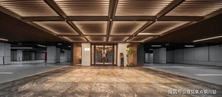 追求星级酒店审美的,还有公区。媲美丽思卡尔顿酒店的车马厅,顶部藻井格栅、地面天然石材铺装、透光云石楼栋标识、云石单元门把手的运用,加上天地墙一体化设计,每一次归家都是视觉与体验的双重享受。
