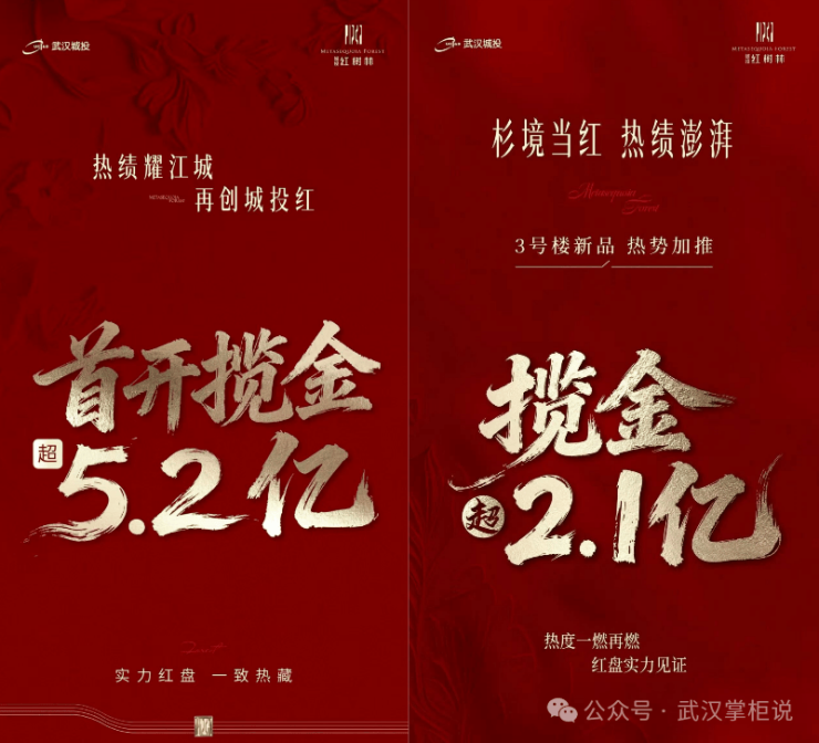 城投·红树林,也是一个未开先火的项目,10月25日项目营销中心开放两天就圈存超500组;首开仅用一天,便热销约5.2亿;12月12日加推,劲销超2.1亿;入市两个月卖了将近300套,夺得2025年江汉区年度销冠。
