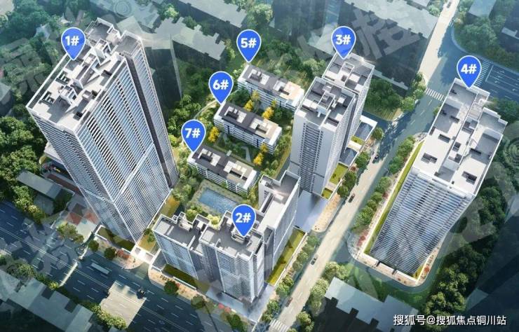 其中5、6、7号楼为总高4层的叠拼,1号楼是总高53层的超高层,2号楼为总高33层的高层。