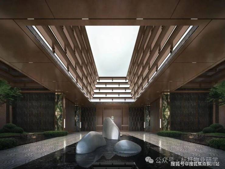 归家动线以东西轴向展开,融合高端酒店的仪式感与东方园林的步移景异。约51米入口尺度,配合约9.5米门庭规制,营造尊崇而不失温度的抵达体验。材质甄选“翠谷幽兰”“铂金钻”等珍稀石材,纹路清逸、光泽流转,于细节中传递低调奢华的气质。