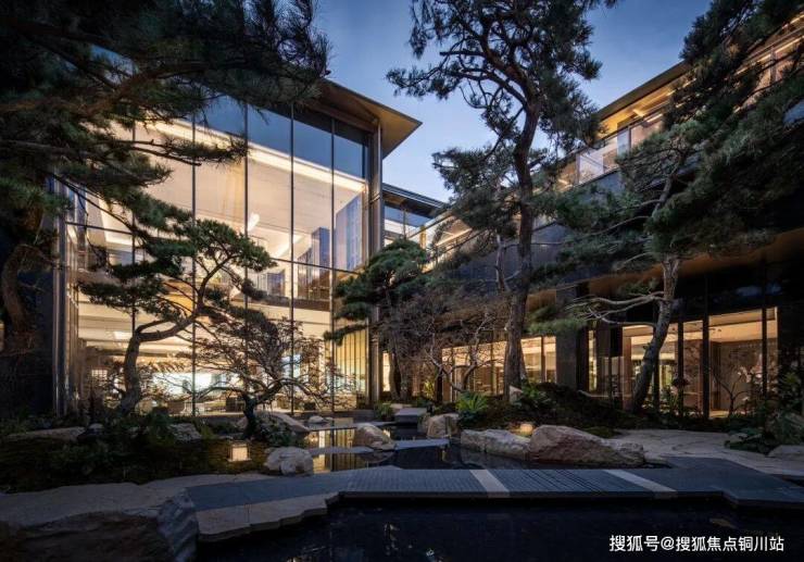 其中,A地块约2400㎡的「月下雅涧」会所,利用场地高差,形成自然叠落的水瀑,将园林景观延续至下沉庭院。