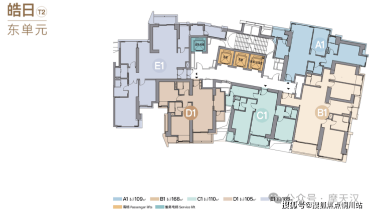 本次公开销售的房源位于项目T1座,主力产品为建筑面积约310及370㎡的四房户型。