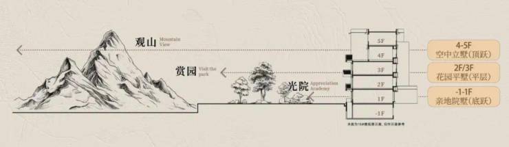 项目分为空中立墅、亲地院墅、花园平墅三类产品。