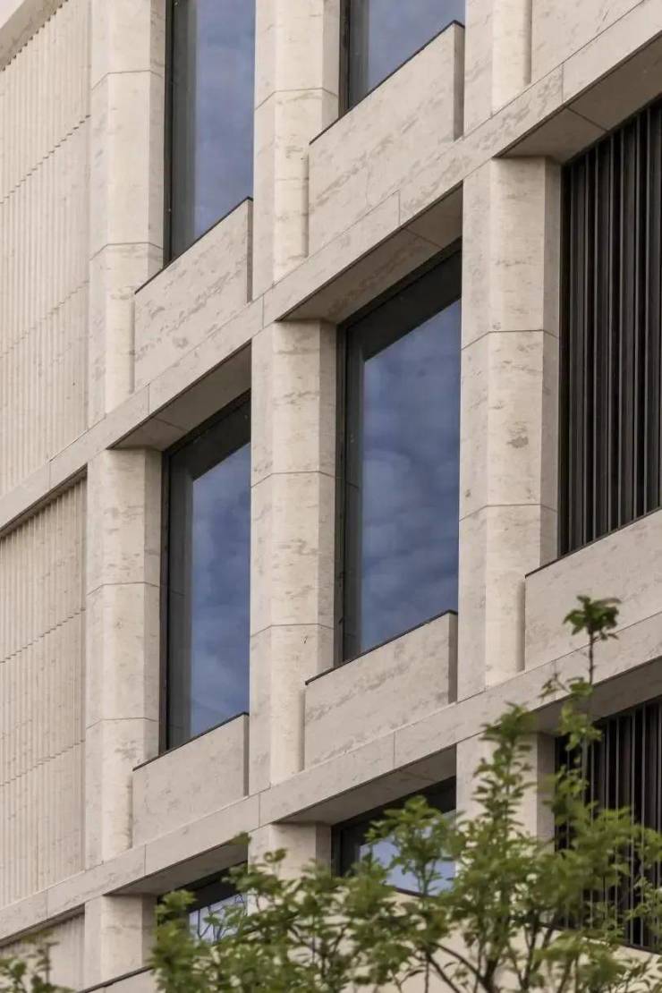 区别于以往金基常用深稳内敛的空间色彩来表达产品高端沉厚的气质,中北金基山和月此次大量采用米白、米金等浅色奢材,以此来打造超然惬意的度假感空间。在建筑外立面选用宝格丽旗舰店同款奢石——维纳多,温润的质感和米白的石面与金陵沉厚的气质相契。