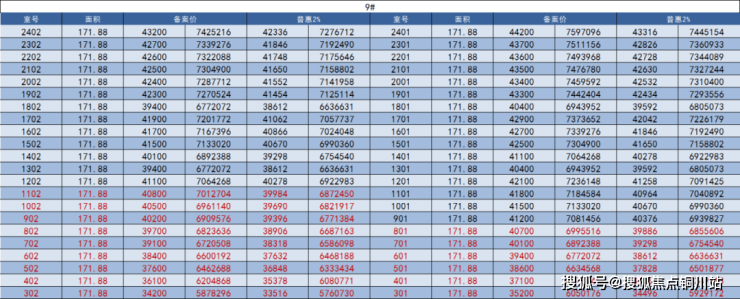 同样是南向首排建面约170㎡户型,二期9#普惠均价约4万/㎡,比一期2#低了约1600余元/㎡。