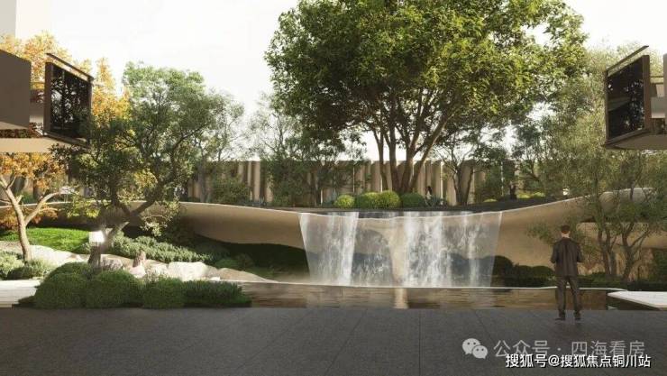 将自然主义与东方哲学相融,以“水”为脉,四水归堂,叠山理水,构筑六大主题区,通过五大景观元素,形成 “九景共生” 的悬浮游园体验。