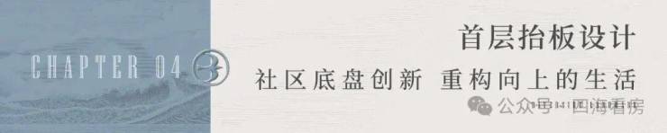 利用地库整体抬升约2.7米,形成场地高差,创造出4层观江会所与3层架空花园的独特空间效果,以超前手法重构“一楼一岛景、浮岛花园”的独特居住体验
