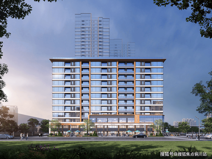建筑立面以约60%窗墙比奠定通透基调,搭配玫瑰金铝板斜切设计,于简约中勾勒光影的细腻层次。整体风格大气藏奢,历久弥新,展现极具张力的视觉表现。
