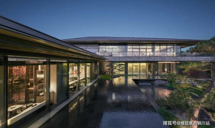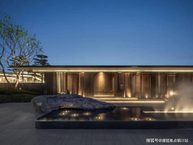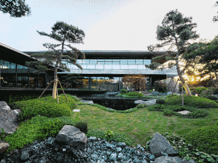 在建筑风格上,整个园区建筑设计以“山”为主题,利用东西向天际线的变化与南北向的高低错落勾勒出一幅经典“江南山水”画卷。立面提炼宋式精工美学,打造隐奢大宅气质,顶部采用东方建筑“飞檐”造型,形成极具东方气韵的建筑外貌,呈现现代东方极简美学。